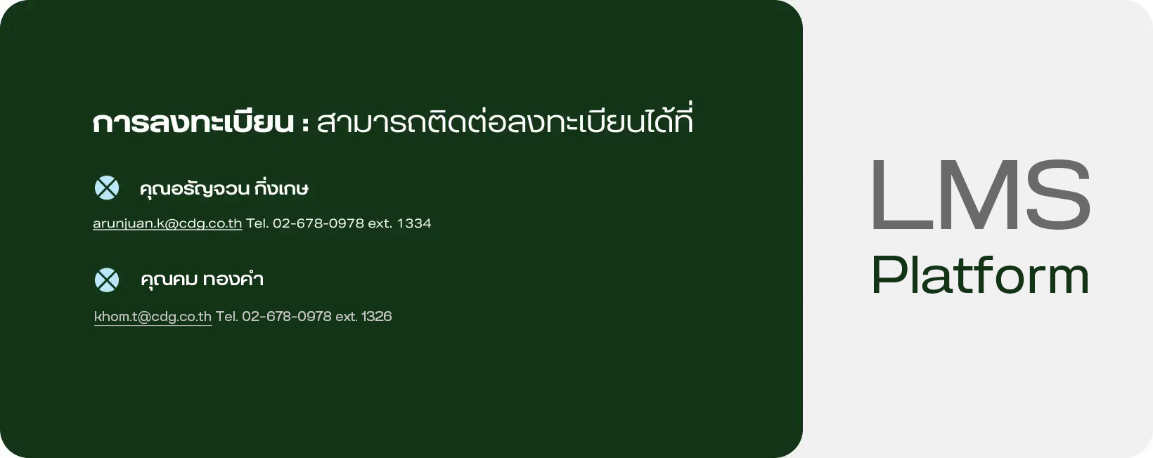 เราพร้อมให้คำปรึกษาและดูแลทุกขั้นตอนการลงทะเบียน เพื่อให้การอบรมของท่านเป็นไปอย่างราบรื่นและเกิดประโยชน์สูงสุด